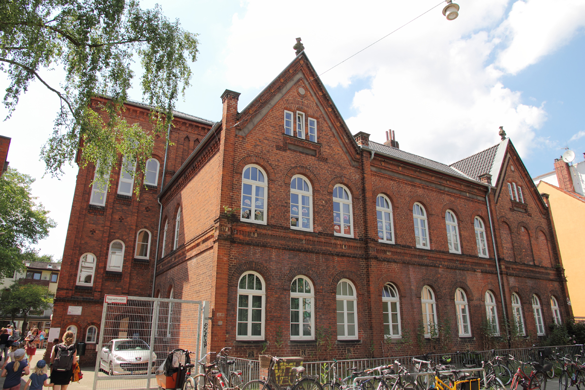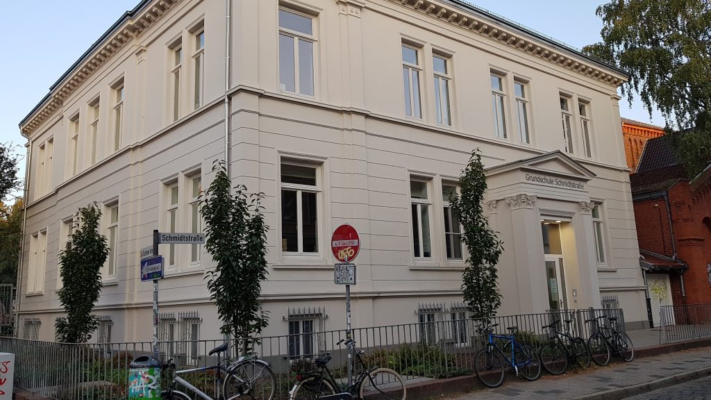 Die Schule an der Schmidtstraße wurde 1854 gegründet und war die erste staatliche Schule in Bremen, an der kein Schulgeld gezahlt werden musste. Damals kamen die Kinder sehr häufig mit Holzschuhen – den Klünken – in den Unterricht, weil Lederschuhe für die meisten Besucher dieser ersten Freischule zu teuer waren. Darum wurde die Schule auch liebevoll Klünkengymnasium genannt.